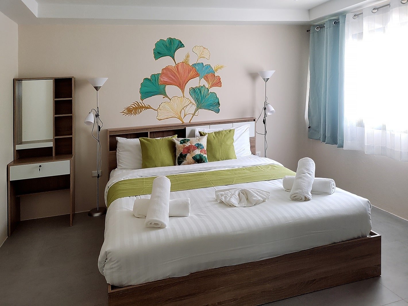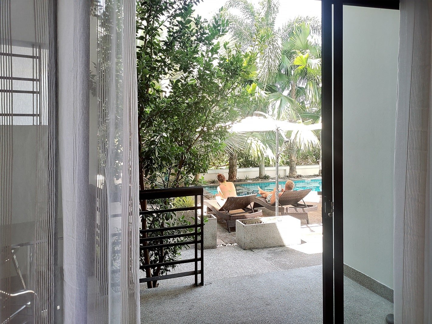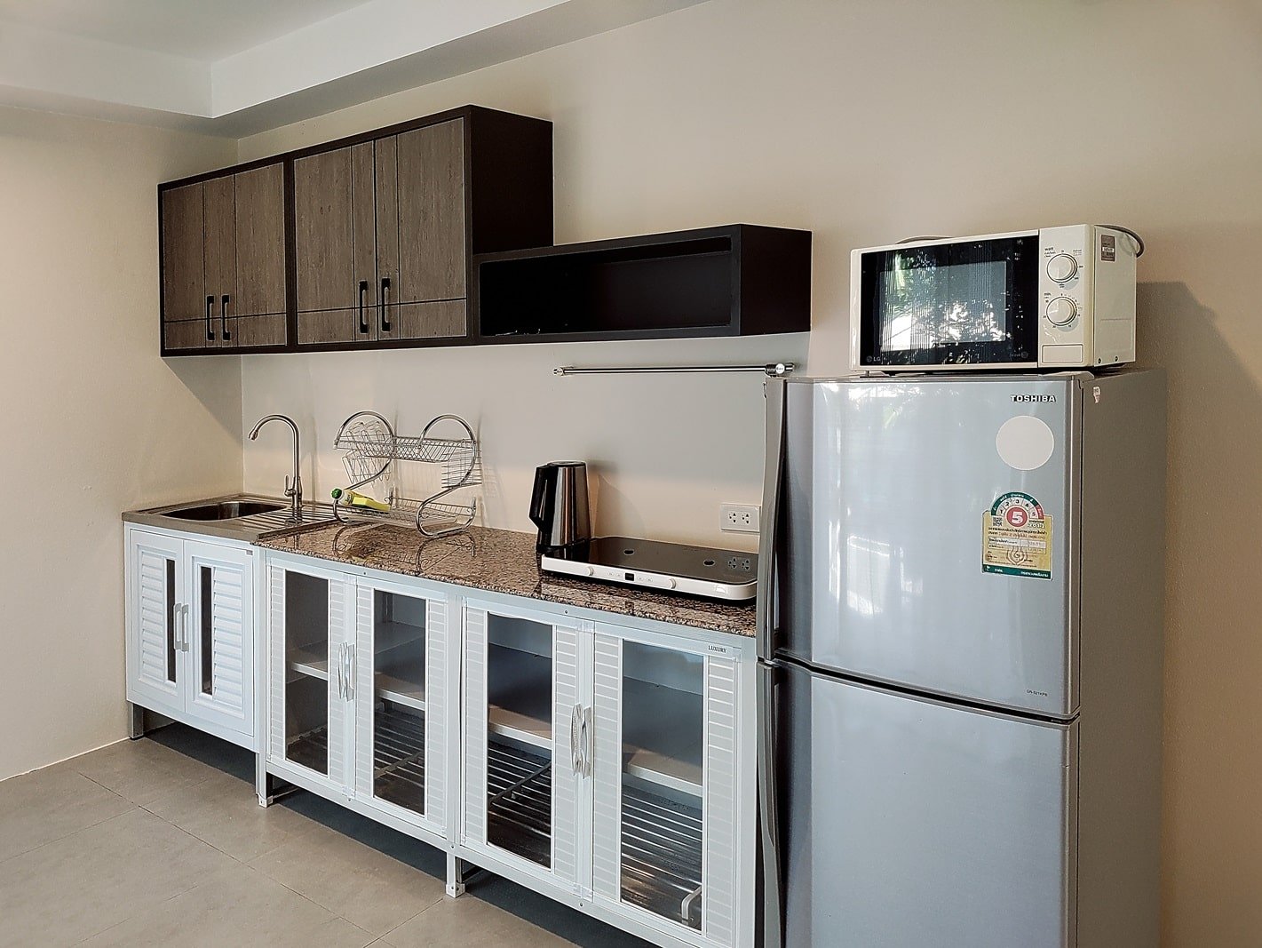 Meals can be prepared in the well-fitted kitchenette, which comes with a stovetop, a refrigerator, kitchenware and a microwave. The spacious family room provides air conditioning, a private entrance, a terrace with pool views as well as a private bathroom featuring a bath.